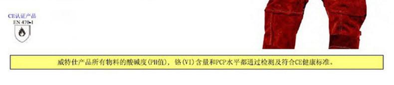 威特仕44-7148蠻牛王防火阻燃圍裙由耐用、柔韌的牛二層咖啡色芯皮制成,具耐磨、隔熱和抗火性能;此款設(shè)計新穎,經(jīng)濟實惠,操作靈活輕便,廣泛適用在炎熱氣溫或室內(nèi)焊接;CE認證產(chǎn)品 EN 470-1;長度: 122CM。