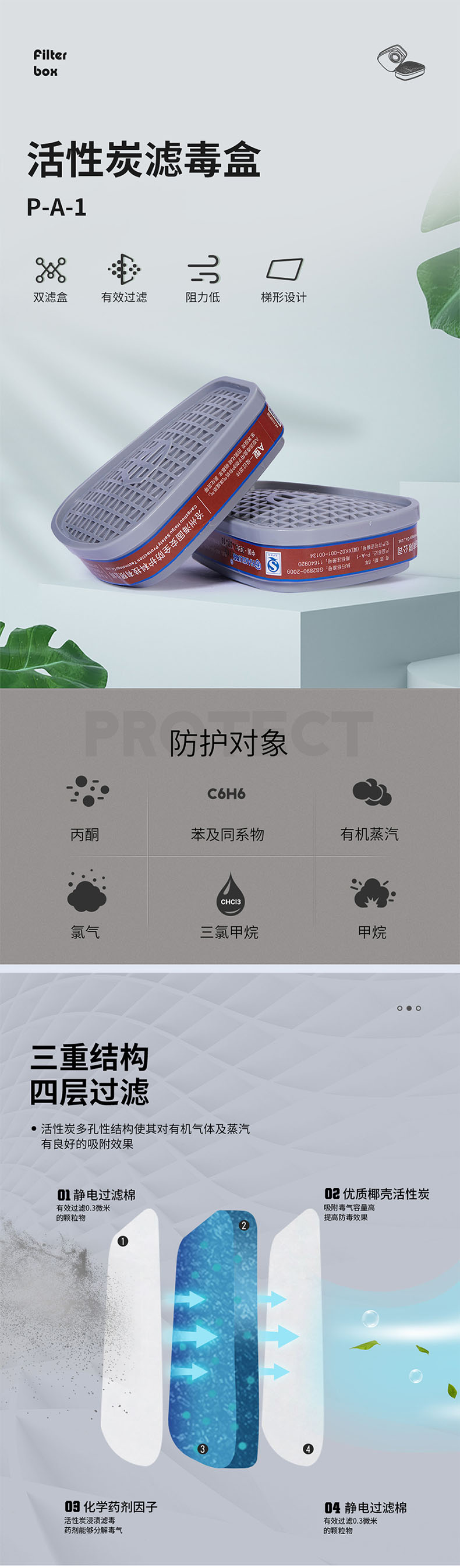 功能 | 3號(A型)濾毒盒,過濾有機氣體與蒸氣:苯、丙酮、醇類、四氯化碳、三氯甲烷等 |