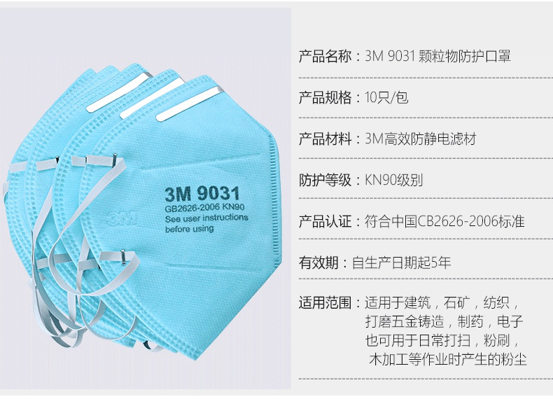 3M9031KN90防塵口罩主要用于保護(hù)人體在呼吸過程中,避免粉塵顆粒物對呼吸道損傷。3M9031KN90防塵口罩不可用于噴砂玻璃,由于噴砂操作通常會產(chǎn)生極高濃度的粉塵,同時還伴隨高沖擊力的固體飛濺物和高噪聲,有可能對操作者的眼睛、臉部和皮膚造成傷害,因此需要綜合防護(hù),包括呼吸防護(hù)、眼面防護(hù)、聽力防護(hù)和皮膚防護(hù)。