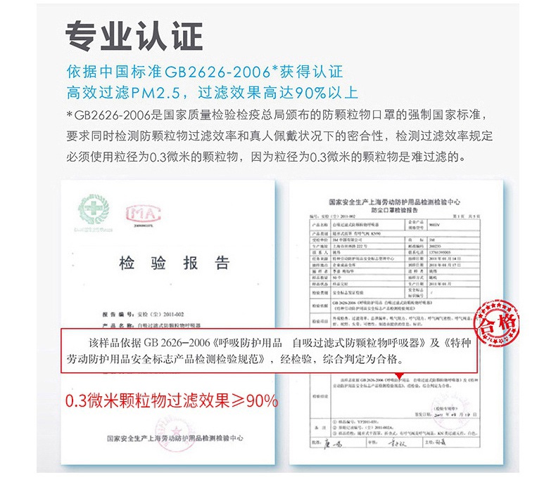 3M所有進(jìn)口的3M防塵口罩同時都符合我國標(biāo)準(zhǔn),經(jīng)過檢測,獲得“勞動安全LA”標(biāo)志認(rèn)證。