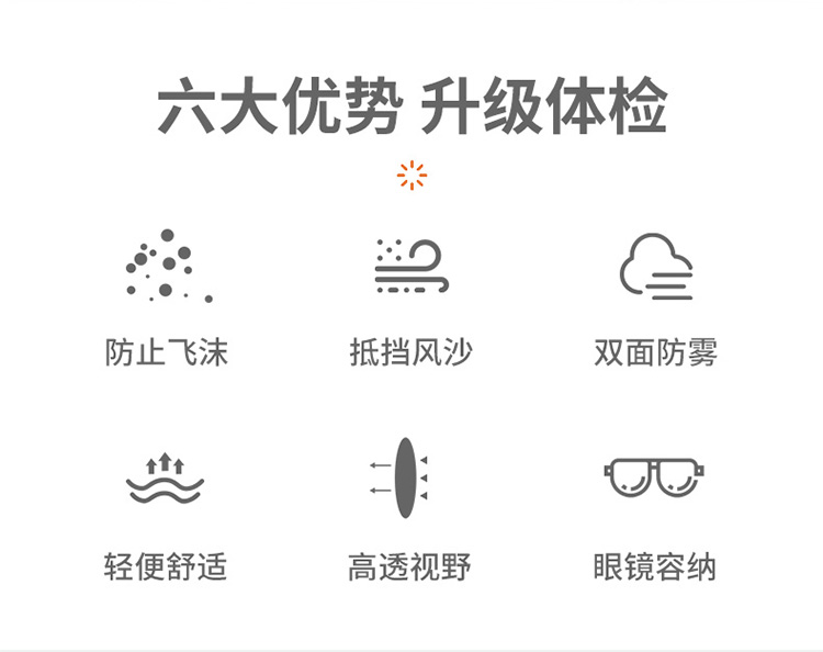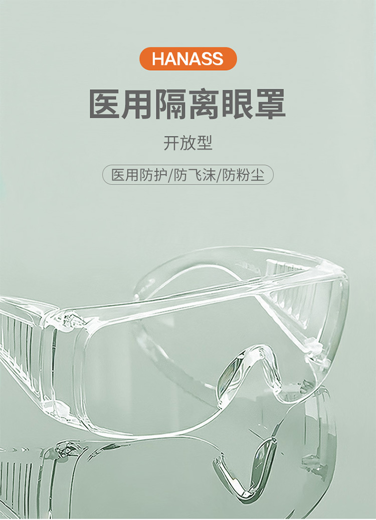 海納斯醫(yī)用防塵防護眼鏡六大優(yōu)勢升級體檢,防止飛沫、抵擋風沙、雙面防霧、輕便舒適、高透視野、眼鏡容納。