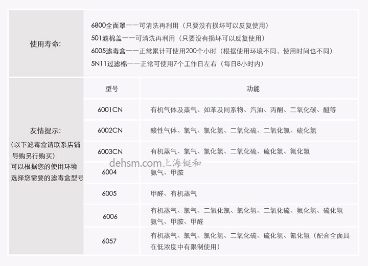 2.防毒:3M6800全面罩配備3M6000系列濾毒盒可提供對(duì)某些有害氣體的防護(hù)(具體濾毒盒的選擇需要結(jié)合現(xiàn)場(chǎng)有毒氣體的性質(zhì))