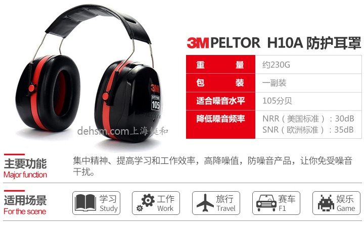 3M H10A頭戴式高降噪隔音耳罩高性能防噪音耳罩