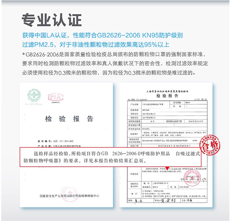 產(chǎn)品標(biāo)準(zhǔn):中國(guó)LA認(rèn)證(GN2626-2009 KN95級(jí)別)