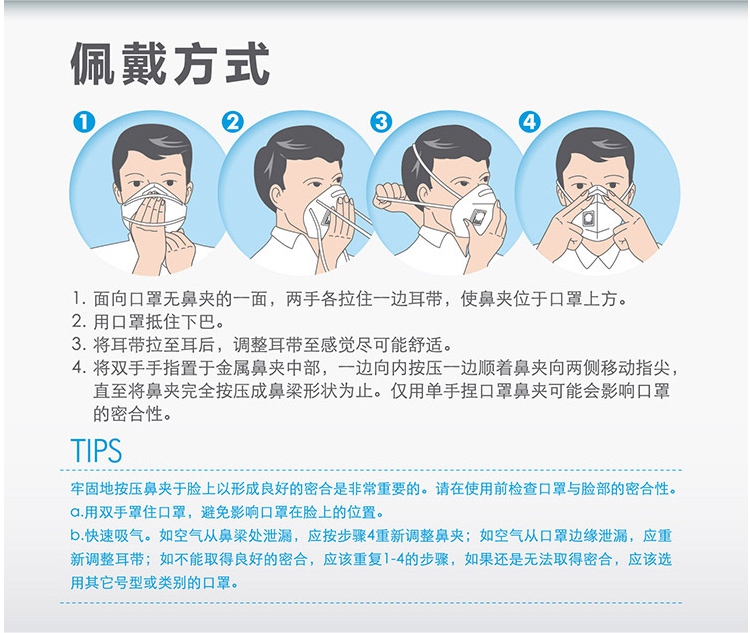 1.將口罩蓋住口鼻、金屬鼻夾朝上、佩戴是請(qǐng)把頭戴每2至4厘米拉松。