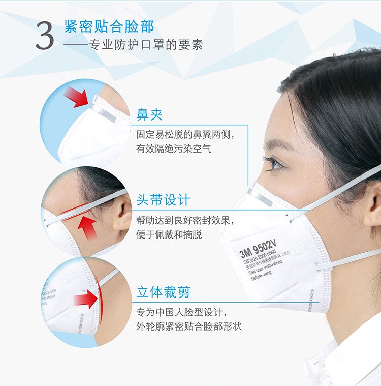 3M9502V防塵口罩為頭帶式KN95口罩,這款防塵口罩密封性好,佩戴舒適,可調(diào)節(jié)鼻夾設(shè)計(jì)。3M9502V防塵口罩高彈性拉帶、伸縮性好、專業(yè)的針對(duì)普通粉塵而設(shè)計(jì)的一款高效3M防塵口罩。