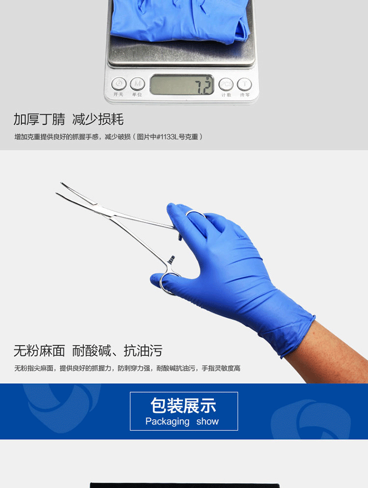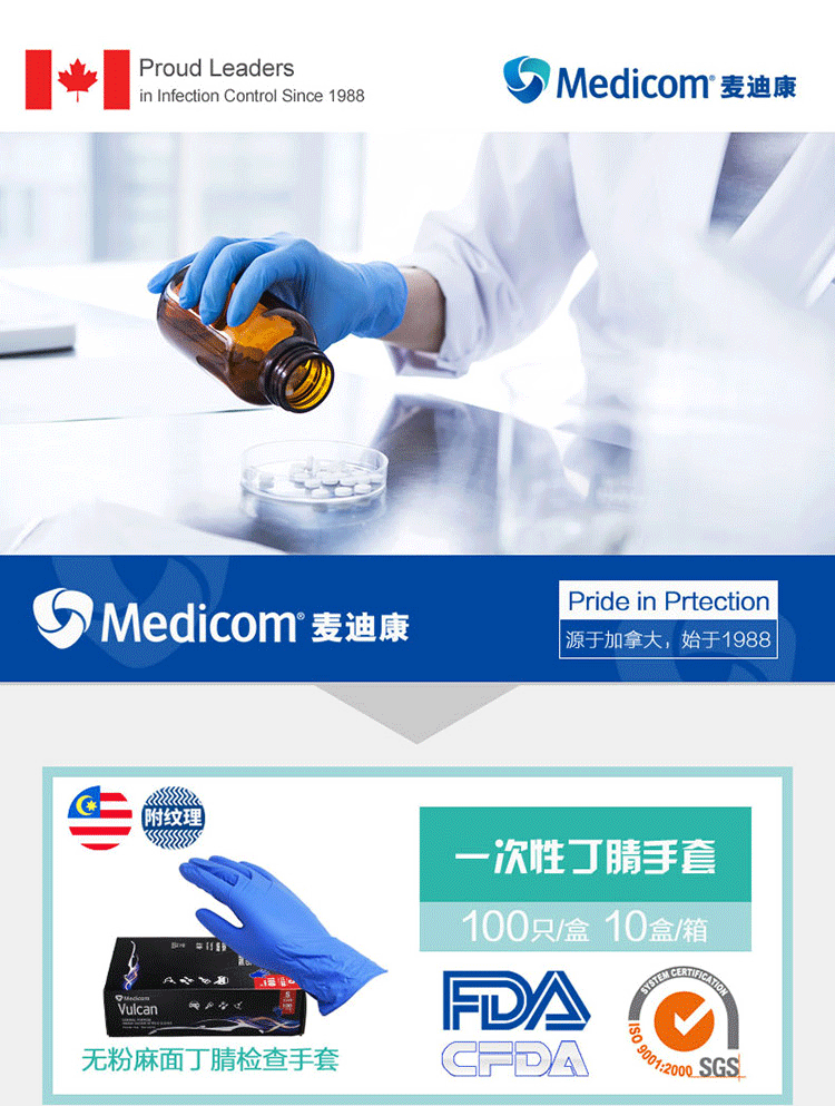 麥迪康丁腈手套無(wú)粉麻面,耐酸堿、抗油污,良好的抓握力,手指靈敏度高。