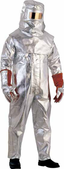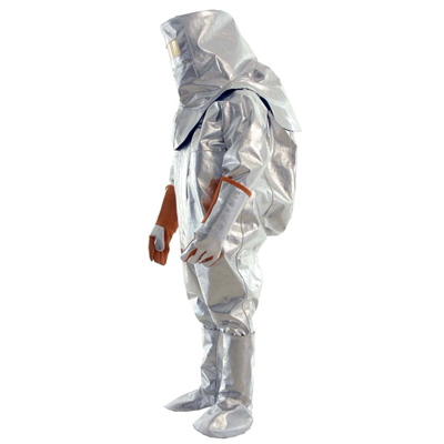 隔熱服符合歐標(biāo)EN366、EN367、EN373標(biāo)準(zhǔn),服裝表面采用鍍鋁隔熱面料(不含石棉),頭罩可單獨(dú)配